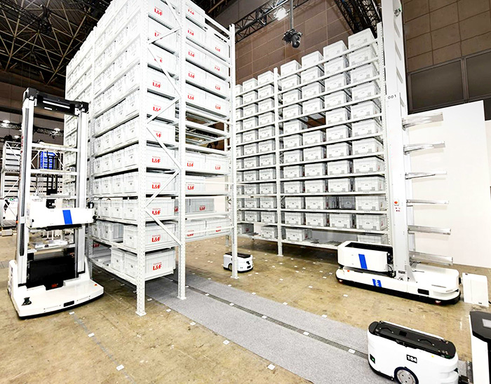 智能搬運(yùn):4臺(tái)料箱機(jī)器人負(fù)責(zé)庫(kù)內(nèi)高位料箱搬運(yùn),將高層料箱精準(zhǔn)轉(zhuǎn)移至底層待取位。